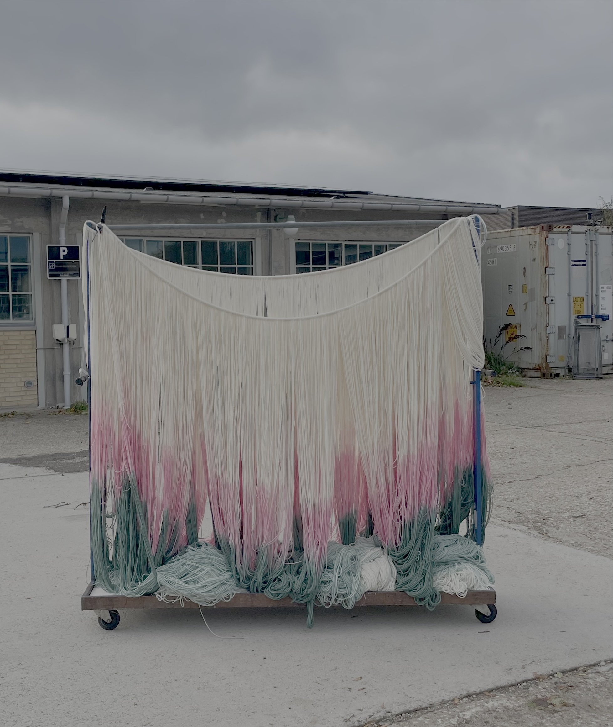 “Jeg har ønsket at skabe værker, der bringer poesi og sanselighed til det kolde og kliniske miljø i forskningsklyngen. Værkerne skal hænge frit i de to nederste etager, hvor de tusindvis af indfarvede garntråde vil skabe en fysisk og visuelt forbindelse mellem etagerne, der balancerer mellem det monumentale og det lette.